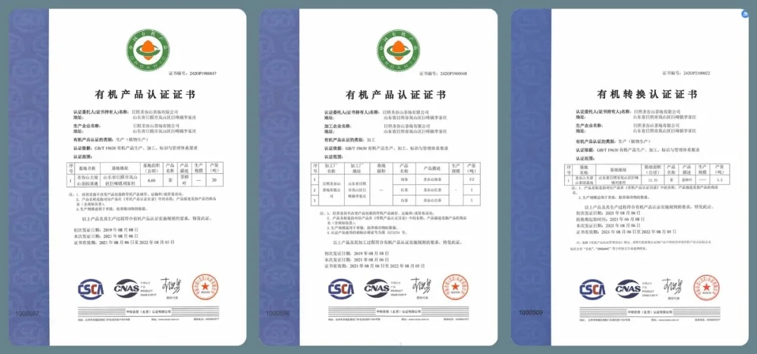 圣谷山自2009年開(kāi)始進(jìn)行中國(guó)有機(jī)的申請(qǐng),2012年順利拿到了有機(jī)認(rèn)證證書(shū),2014年獲得美國(guó)雨林聯(lián)盟認(rèn)證,之后陸續(xù)獲得了歐盟有機(jī)、美國(guó)有機(jī)和日本有機(jī)認(rèn)證,十多年來(lái),圣谷山一直秉持著“用心做茶、用心做好茶”的理念,圣谷山茶場(chǎng)在堅(jiān)持認(rèn)證的道路上越走越遠(yuǎn),也越走越順。