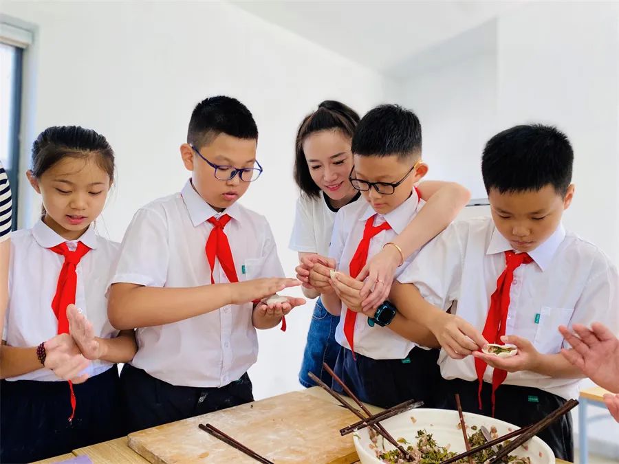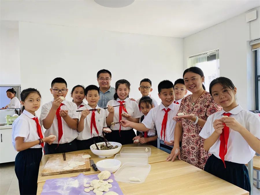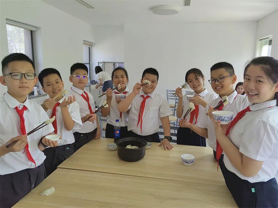 于是,在家長們的幫助下,隊(duì)員們又變成小廚師,有的和面,有的調(diào)餡,有的搟皮,大家分工明確,動手包起水餃來。不一會兒,一盤盤香氣撲鼻的茶葉水餃端上餐桌,吃著鮮嫩的茶葉水餃,喝著親手采摘的茶葉,隊(duì)員們臉上寫滿幸福。