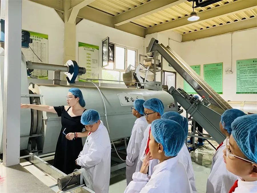 中午時(shí)分,一筐筐新采的茶葉被運(yùn)回加工廠。隊(duì)員們立即穿上工作服,跟隨工人們一起加工生產(chǎn),探究茶葉的變化過程。嫩綠的新芽隨著傳送帶緩緩進(jìn)入機(jī)器,經(jīng)過烘焙、炒制、壓平等九道工序后,我們常見的日照綠茶才基本成型。隊(duì)員們看到一包包茶葉慢慢滑出,再次豎起大拇指,為科技發(fā)展帶來的便利條件點(diǎn)贊,更為自己的辛苦付出加油。
