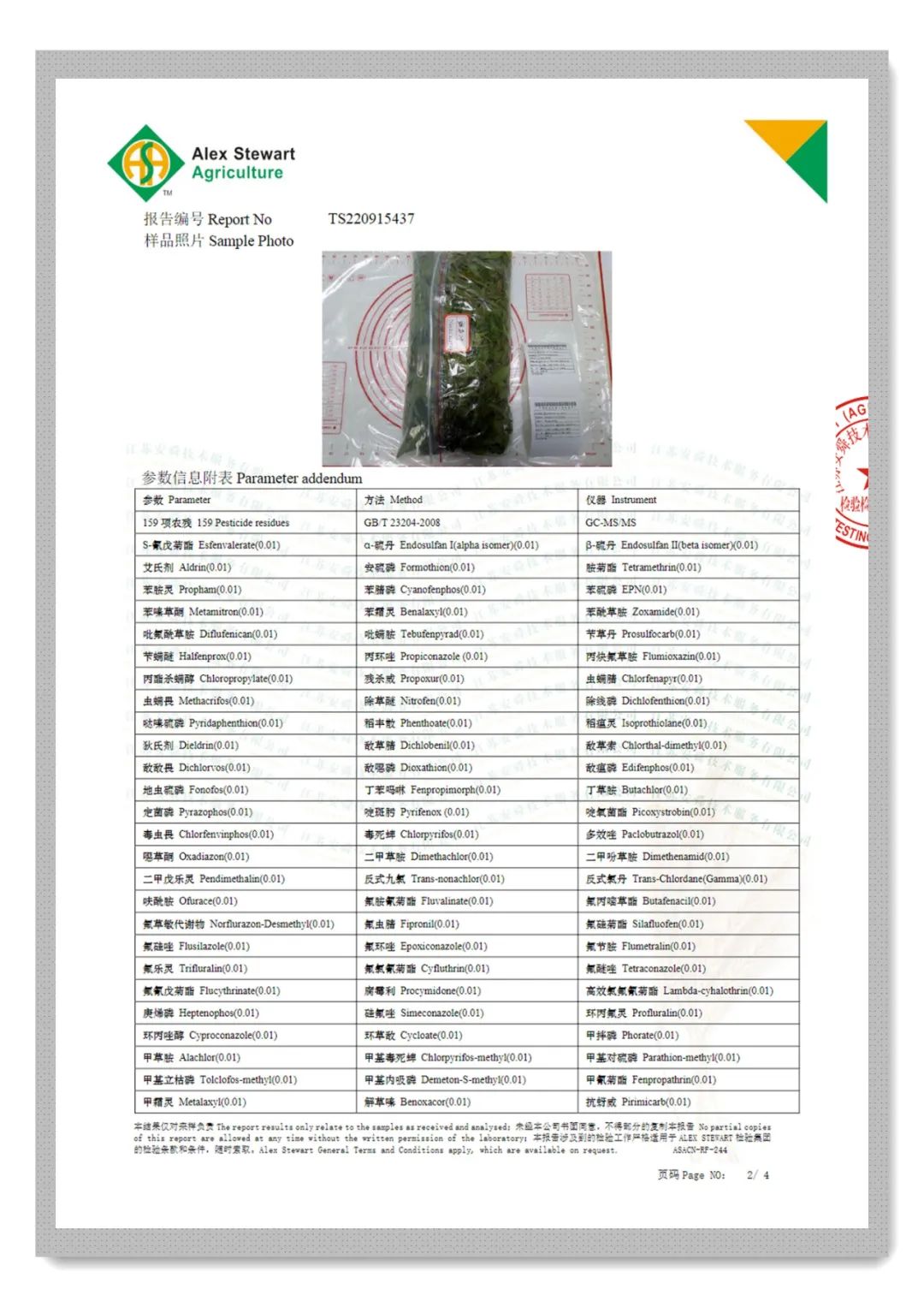 2022年9月24日,圣谷山國際有機(歐盟有機、美國有機、日本有機)認證正式開始,期間對圣谷山有機茶園進行現(xiàn)場采樣封存,并進行了200項的農(nóng)殘檢測,均為ND(ND=未檢出),圣谷山種植基地原料順利通過了國際有機認證的農(nóng)殘檢測。